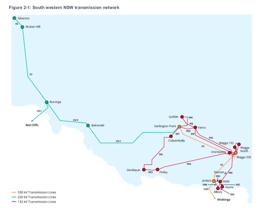 The problem area is the network west of Wagga Wagga (see map at bottom of story). The fear is that too much power will flow back east because of a lack of demand where the solar farms are located.