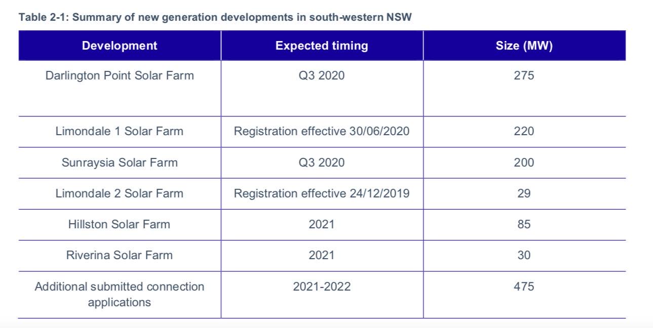 Other new projects in the area include the smaller but already operating 29MW Limondale 2 solar farm, while the 85MW Hillston solar farm, and the 30MW Riverina solar farm are both due for commissioning in 2021. Another 475MW projects have submitted connection applications to be considered over the next few years.