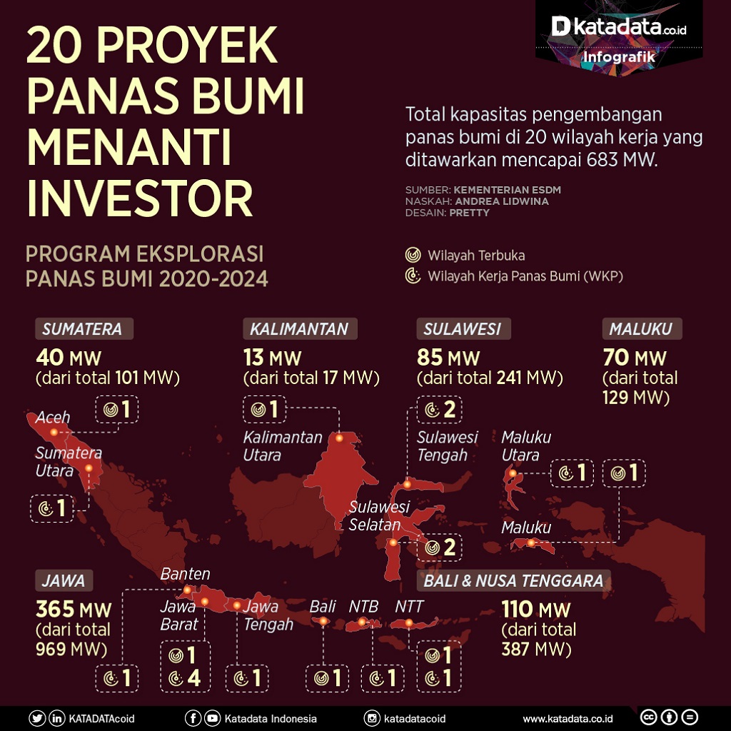 The exploration is carried out in open areas and in the Geothermal Working Area (WKP). Although he has not detailed which areas, Ida stated that the potential of the 20 geothermal areas reaches 683 Megawatts (MW).