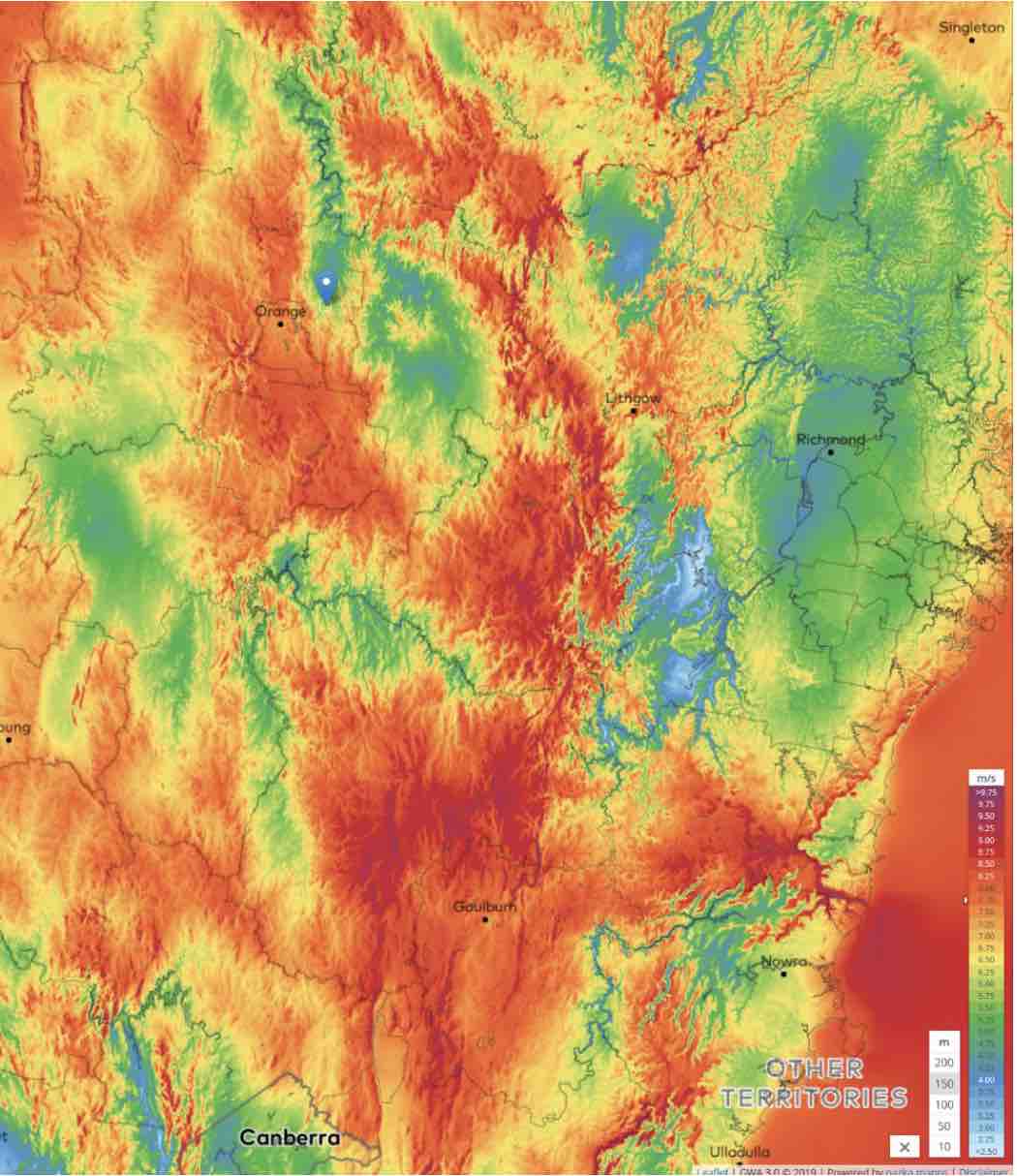 The reasons for this are many: Close proximity to a big load in Sydney (170 km);  a very good solar resources (Figure 1); excellent wind resources (Figure 2);  extensive pumped hydro energy storage opportunities (Figure 3), and good existing transmission (Figure 4). (All figures are at end of story).