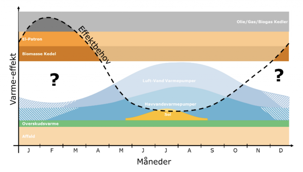 The challenge is, however, that the amount of heat to be generated by heat pumps, running on the energy from sea water or air, is inadequate.