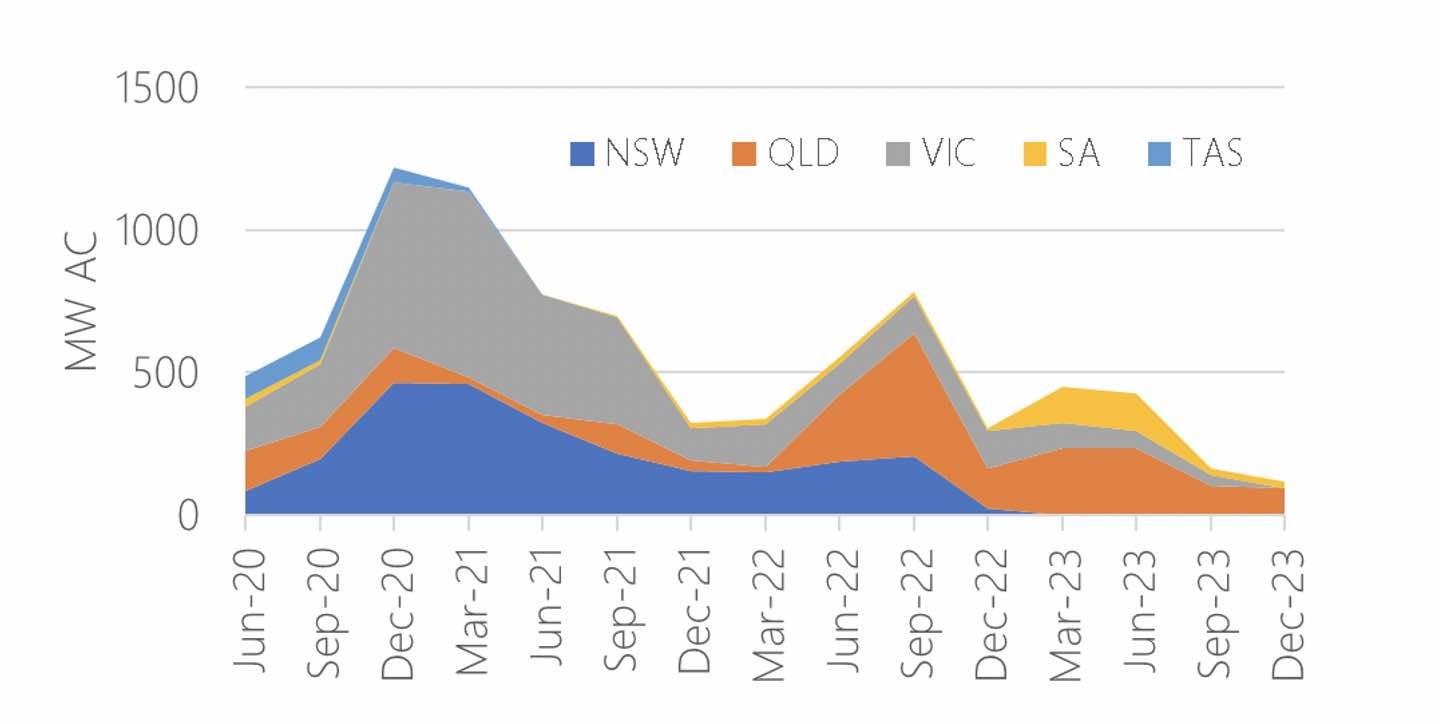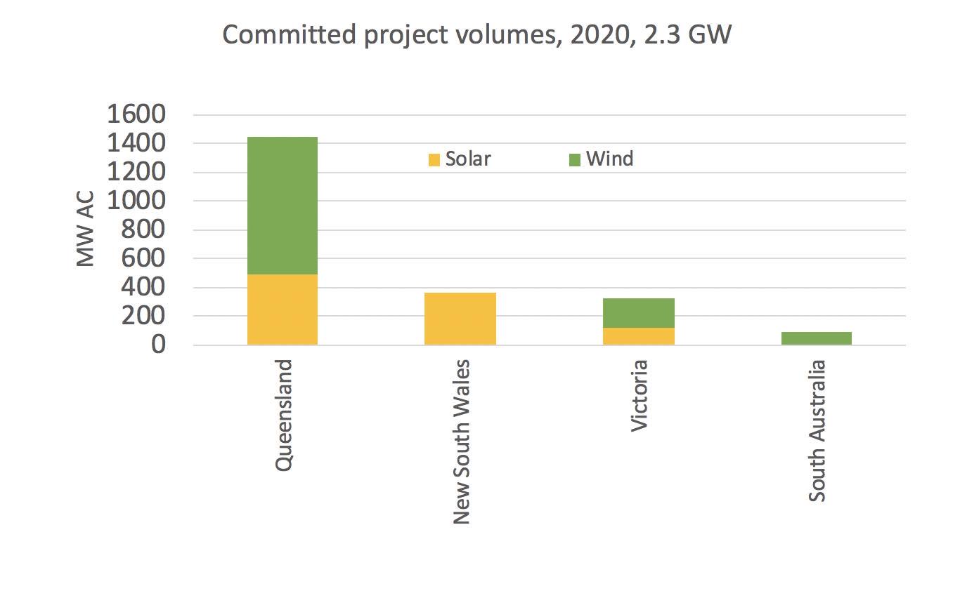 This figure from a couple of weeks back is still showing just 2.3 GW, just 2.3GW, committed so far in 2020, but since then we have had another 200 MW as a result of ACT Government tender and announcement of a further 800MW to come in Victoria.